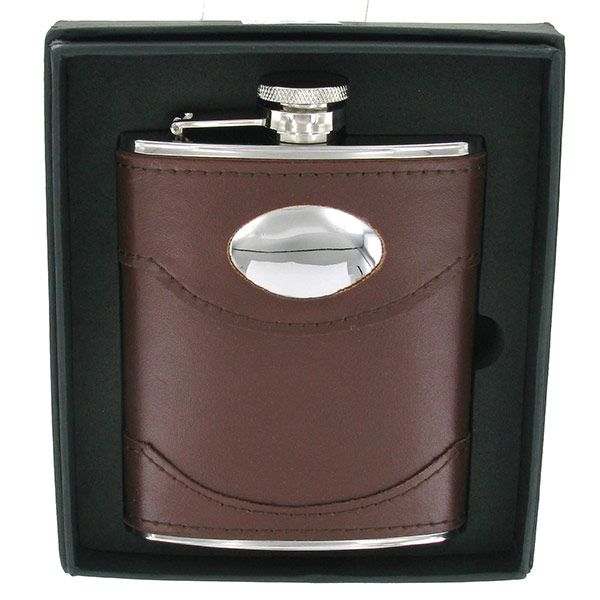 6oz Brown Leather Hip Flask with Engraving Panel