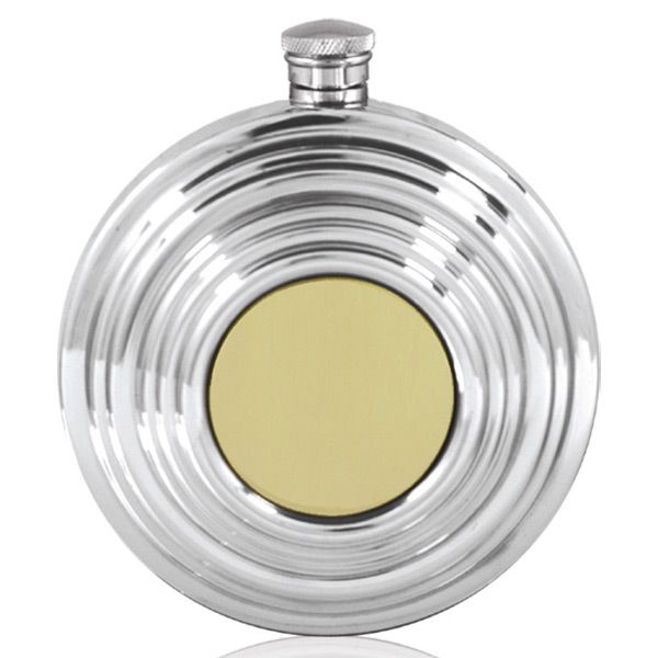 6oz Clay Pigeon Shotgun Round Hip Flask in Pewter/Brass
