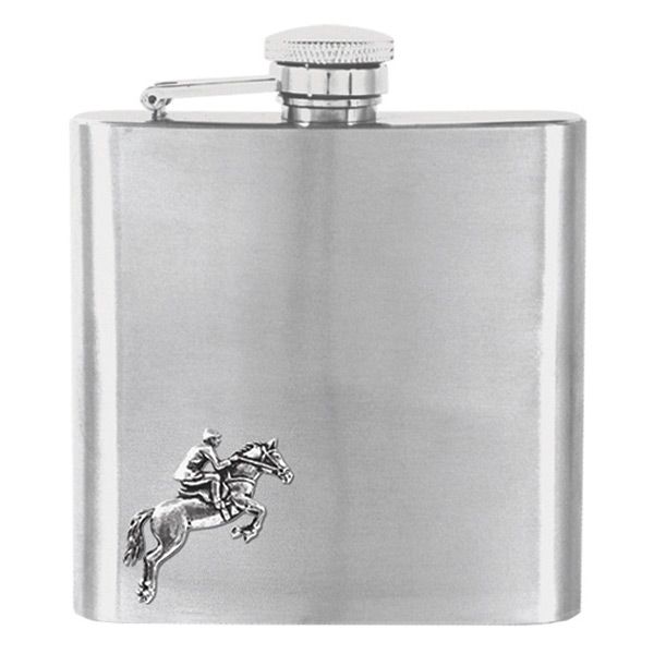 6oz Horse Hip Flask in Stainless Steel with Pewter Emblem