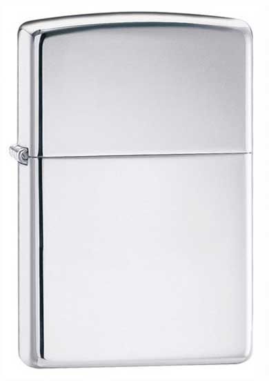 A plain polished chrome Armor Zippo lighter. The armor case is 1.5 times thinker and is noticably heavier than the standard lighter.