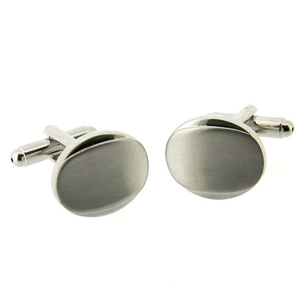 Brushed Chrome Oval Cufflinks with Bevelled Edge
