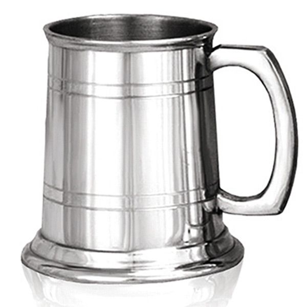 A solid pewter half Pint tankard made with 0.65mm gauge pewter - features a 2 line design. 9.5cm high & comes in an attractive gift box.
