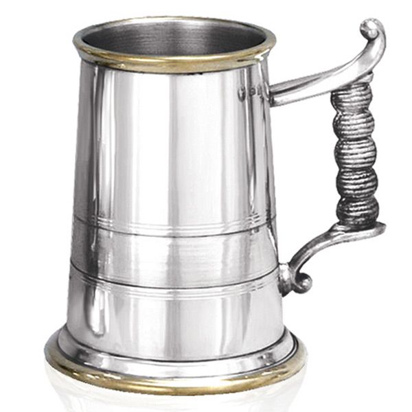A solid pewter 1 Pint heavy gauge Rodney tankard made with 1mm thick heavy gauge pewter. Features brass lip & base. 14cm high & comes in a luxury satin lined gift box.