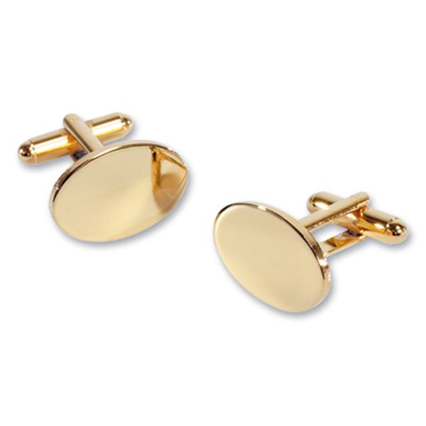 A set of 2 polished Gold plated oval cufflinks. Gift Boxed. Measures: L20 x W15mm