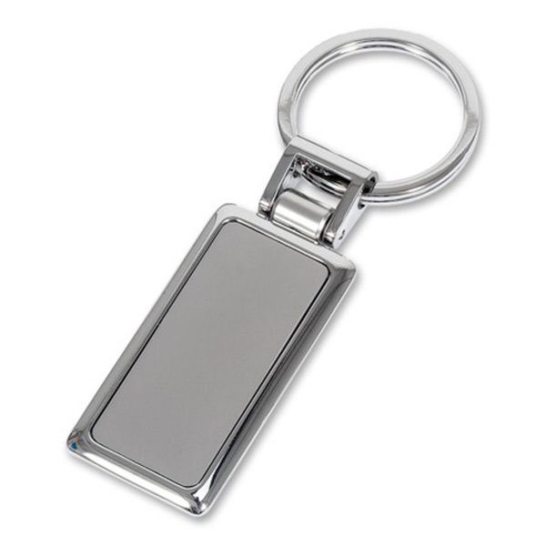 Rectangular Satin Finish Chrome Keyring