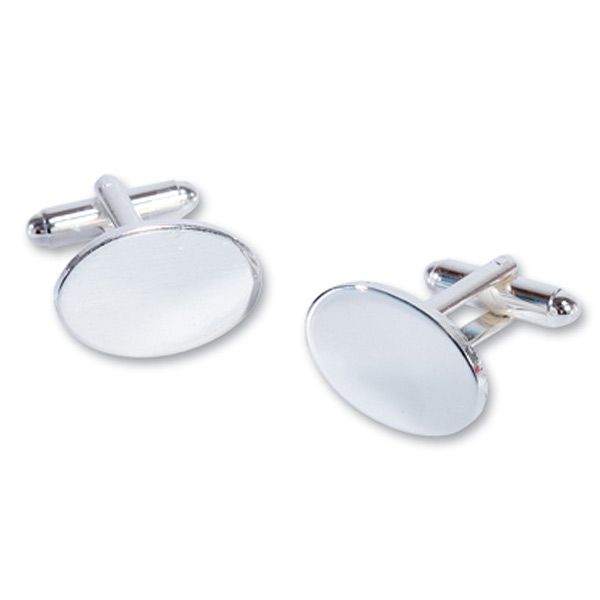 A set of 2 polished Silver plated oval cufflinks. Gift Boxed. Measures: L20 x W15mm